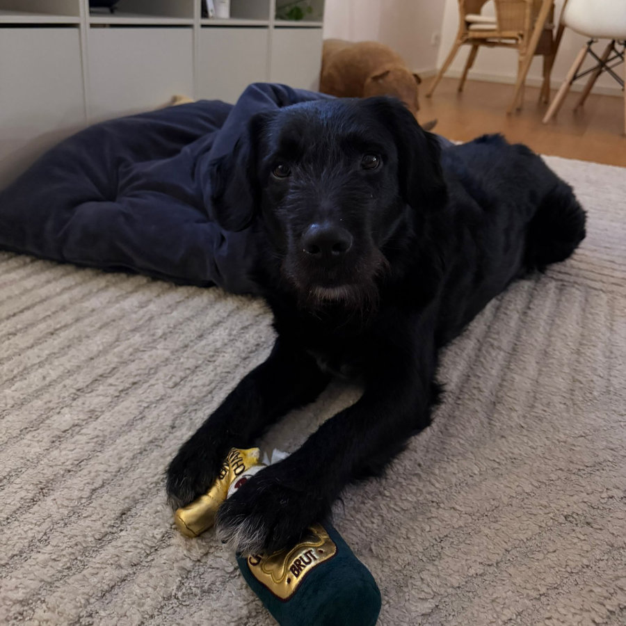 Zuhause ist er ein echter Schatzjäger: Hat er einmal seine Trophäen (meist getragene Socken und leere Klopapierrollen) ergattert, werden diese so schnell nicht wiederhergegeben. Damit auch wirklich niemand auf die Idee kommt, ihm diese zu klauen, legt er sich ganz selbstverständlich drauf und verhält sich äußerst unschuldig. Ein ganz süßer, witziger Racker, der wirklich jedem ein Lächeln ins Gesicht zaubert. Zudem ist er sehr lebhaft und liebt es, über Wiesen zu flitzen, um sich auszupowern.