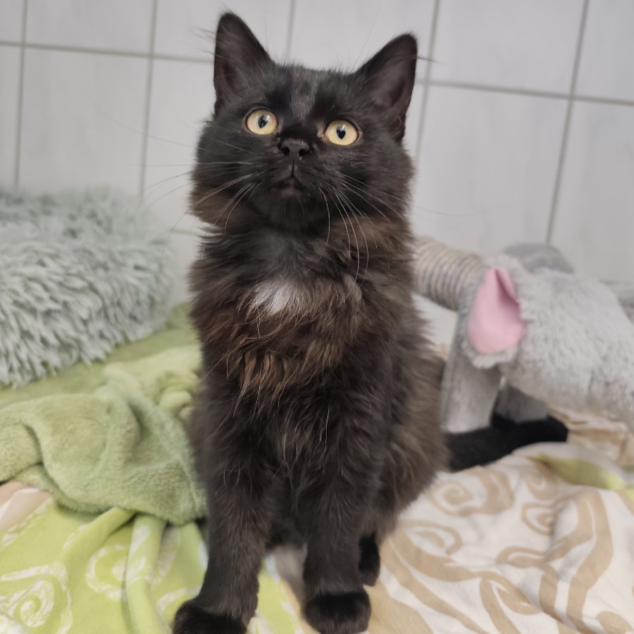 Die beiden etwa drei Monate alten schwarzen Geschwister wurden im Alter von nur vier Wochen gefunden und waren zu Beginn noch unsicher und schüchtern. Mit Fürsorge und Zeit haben sie sich inzwischen jedoch zu aufgeschlossenen, fröhlichen und sehr verspielten Katzenkindern entwickelt, die neugierig ihre Umgebung erkunden und miteinander ausgelassen spielen.